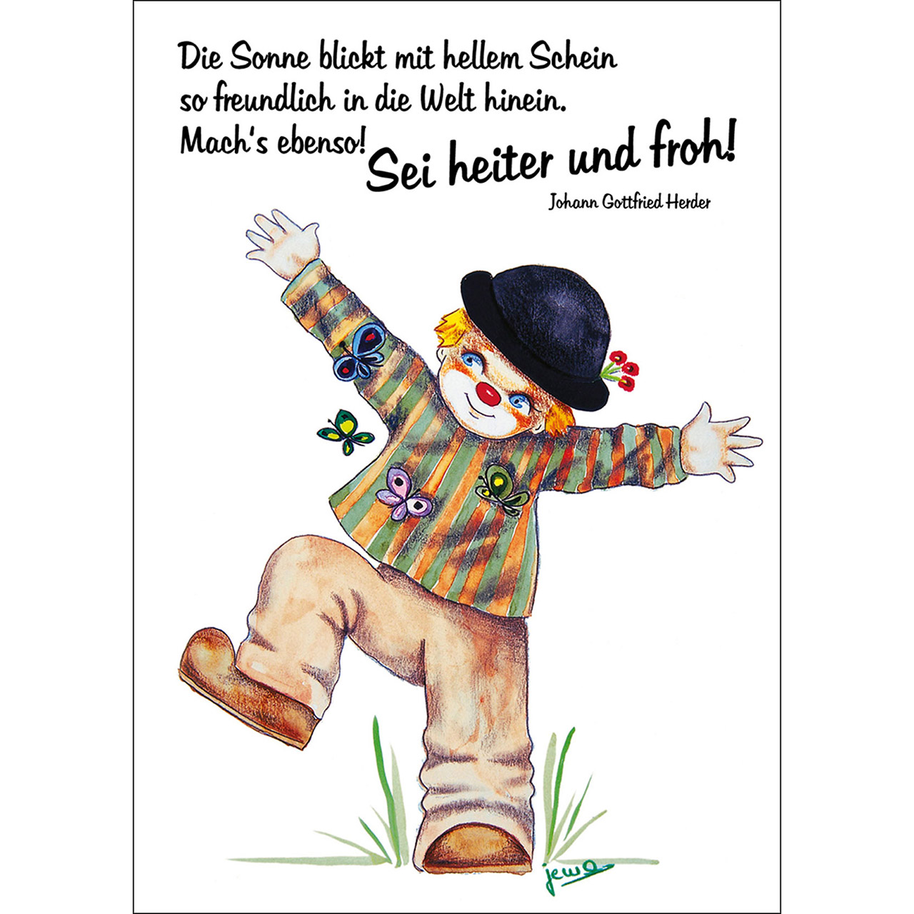 Diese Postkarten mit fröhlichen Clown-Motiven eignen sich hervorragend für Grüße jeder Art, aber auch als kleine Mutmacher an der Wand, am Spiegel oder auf dem Tisch.