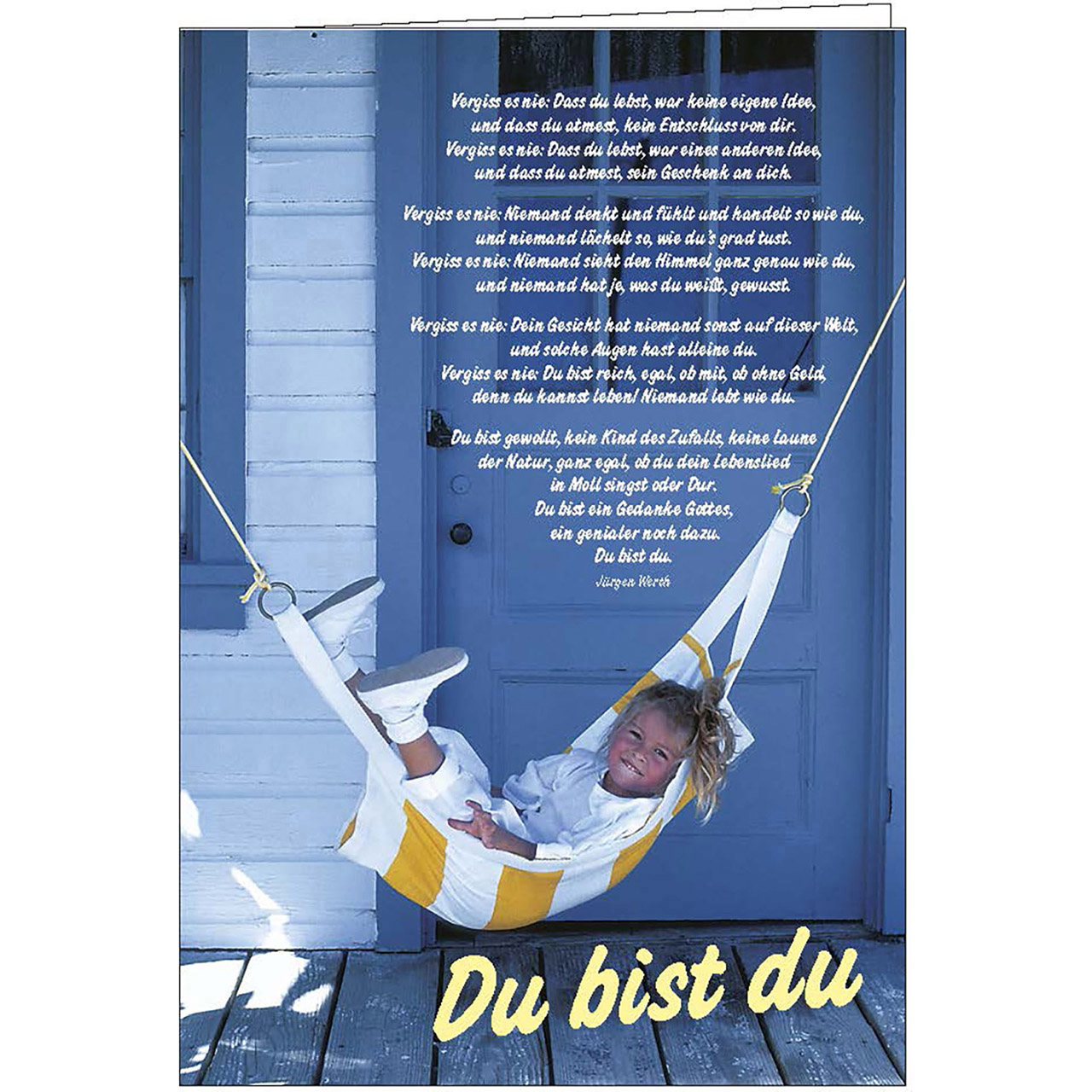 Du bist du - Vergiss es nie: Dass du lebst, war keine eigene Idee, und dass du atmest, kein Entschluss von dir. Vergiss es nie: Dass du lebst, war eines anderen Idee, ......