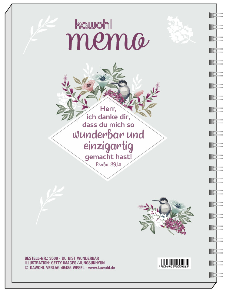 • Memo: farbenfroher Spiralblock mit wertschätzenden Worten, dotted