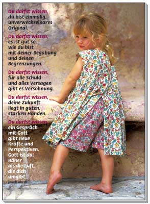 du bist einmalig, unverwechselbares Original. Du darfst wissen, es ist gut so, ...