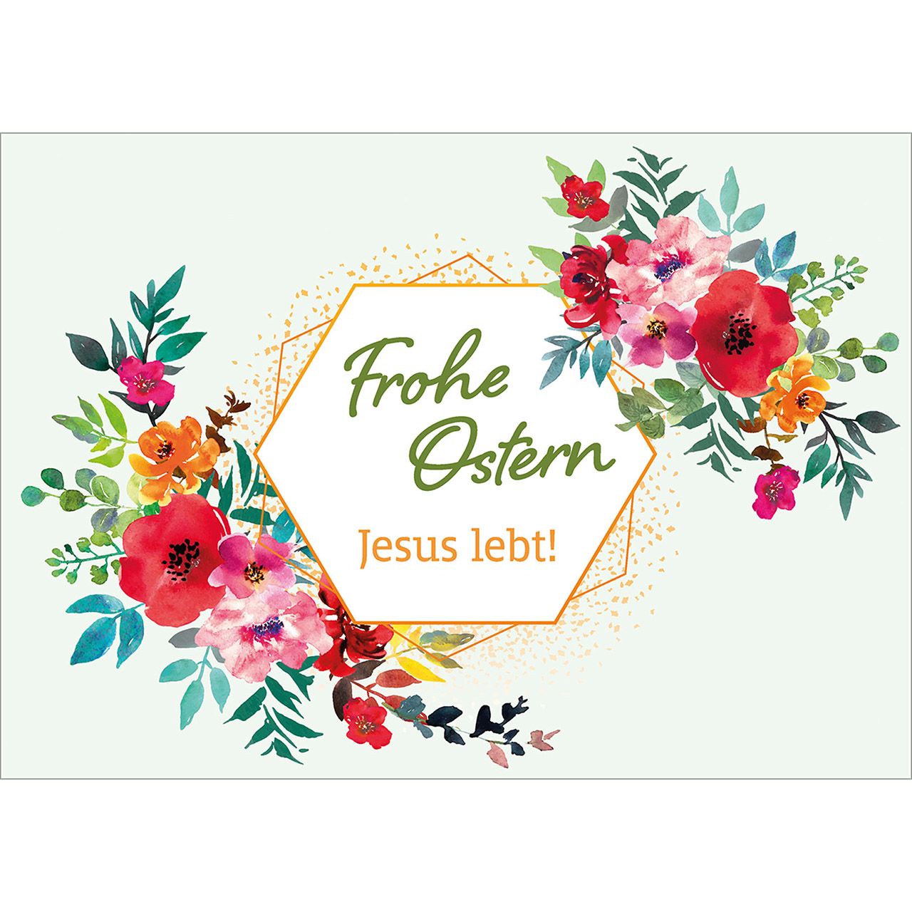 Die Gebindegröße, Menge gibt die Anzahl der gleichen Karten an. - Text: Frohe Ostern - Jesus lebt!