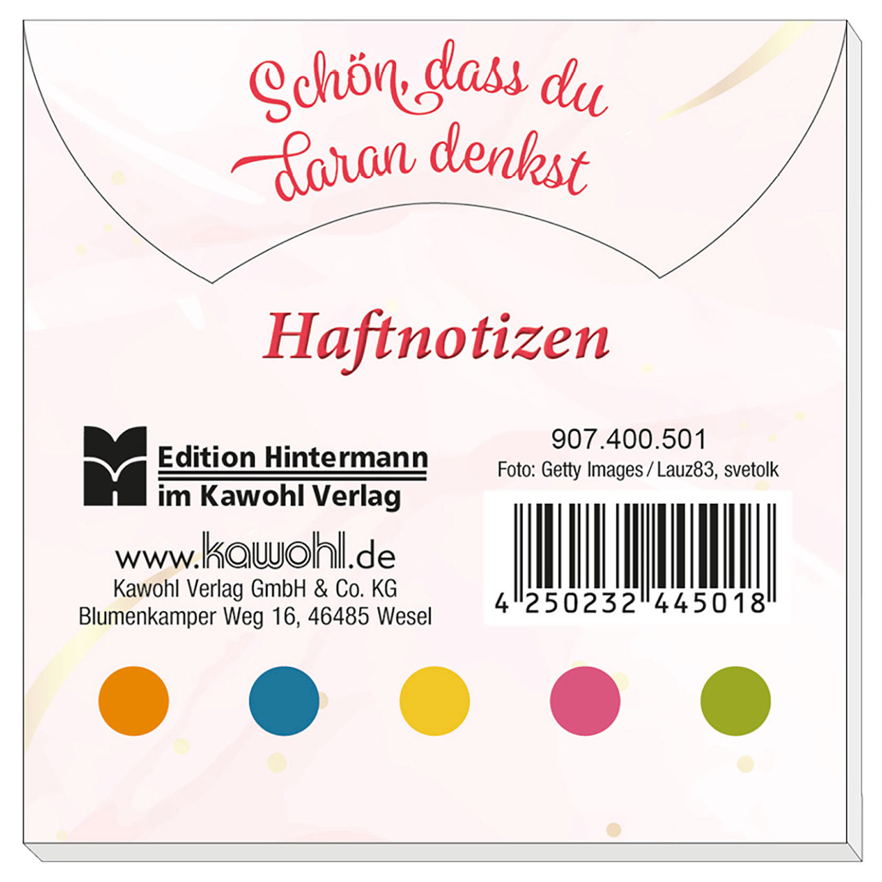 Haftnotizen-Block, verschließbar, mit 25 gelben Haftnotizen sowie 5 farbigen Markerblöcken. - Text: Schön, dass du daran denkst