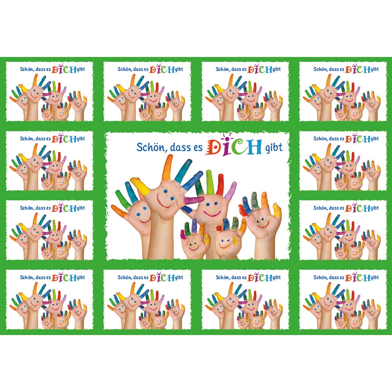 Die Gebindegröße, Menge gibt die Anzahl der gleichen Karten an. - Text: Schön, dass es DICH gibt