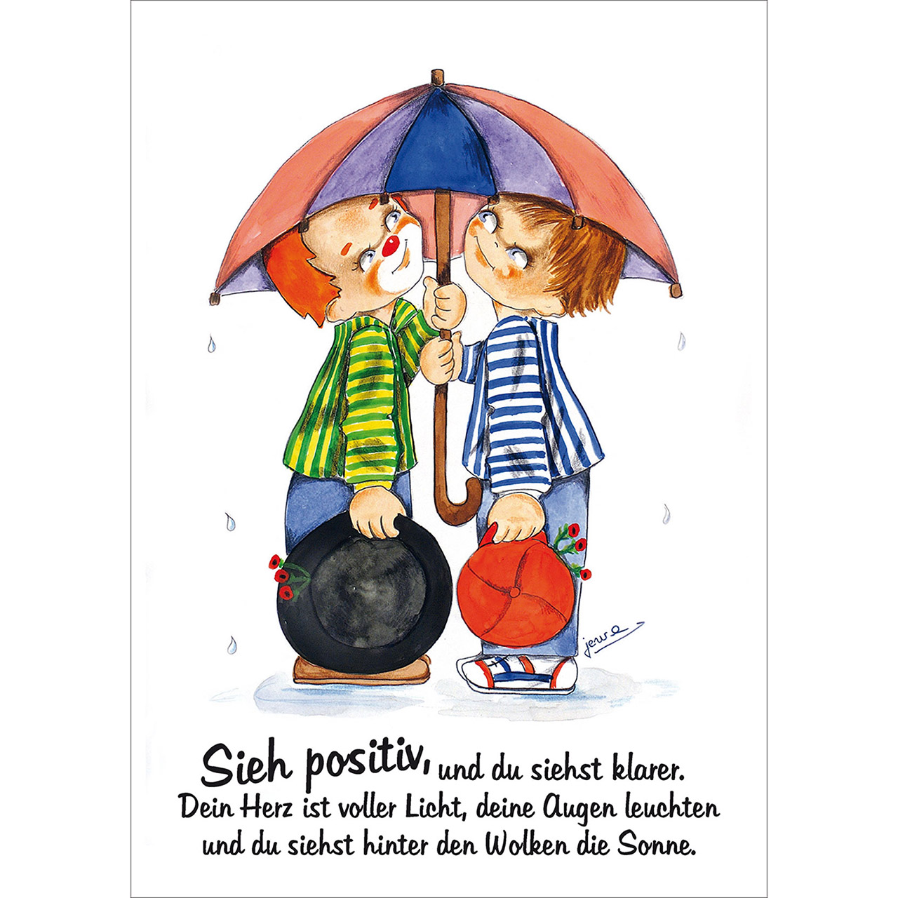 Fröhliche Clown-Karten überbringen anrührende Botschaften
